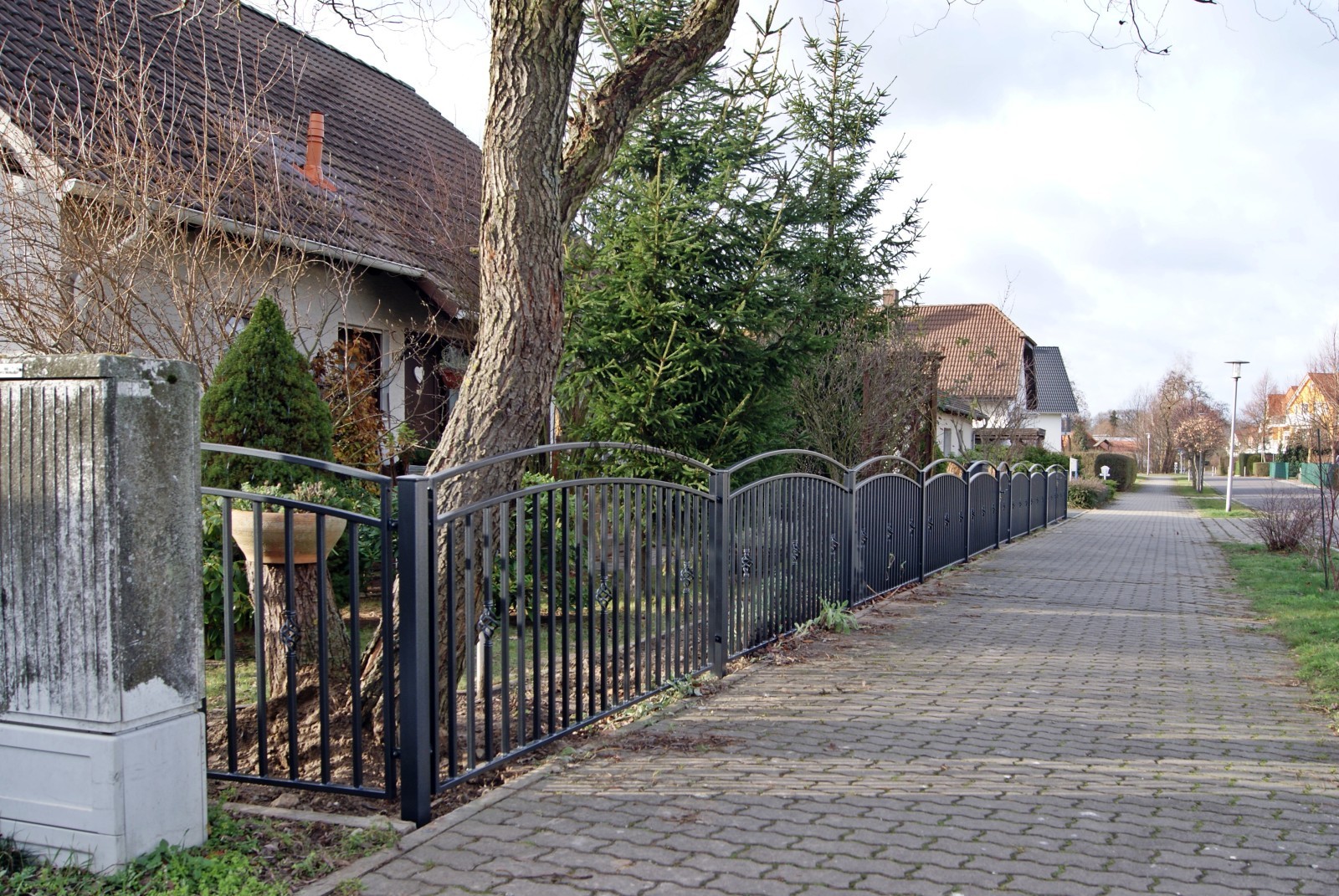 Wir fertigen alle Zäune nach den individuellen Gegebenheiten des Kunden. Es ist keine Massenproduktion. Wir bieten Tore , Pforten und Zaunfelker in verschiedenen Höhen und Breiten an. Alles wird nach Maß gefertigt. Sie können auf bereits vorhandene Mauerpfähle oder auf Metallpfähle montiert werden, die von unseren Monteuren in den Boden einbetoniert werden.